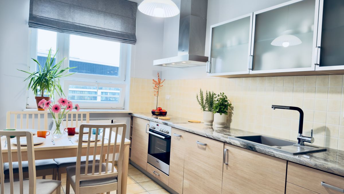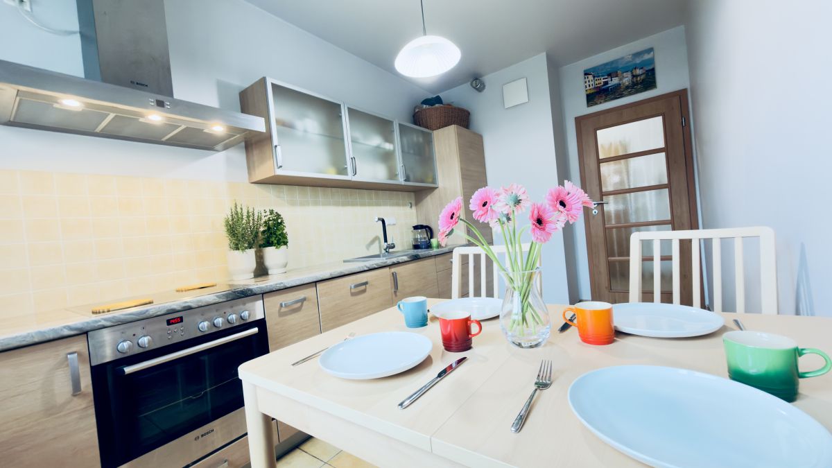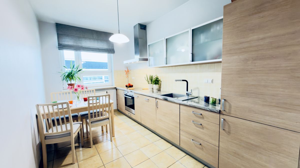 - Duża, przestronna kuchnia z miejscem na stół jadalniany