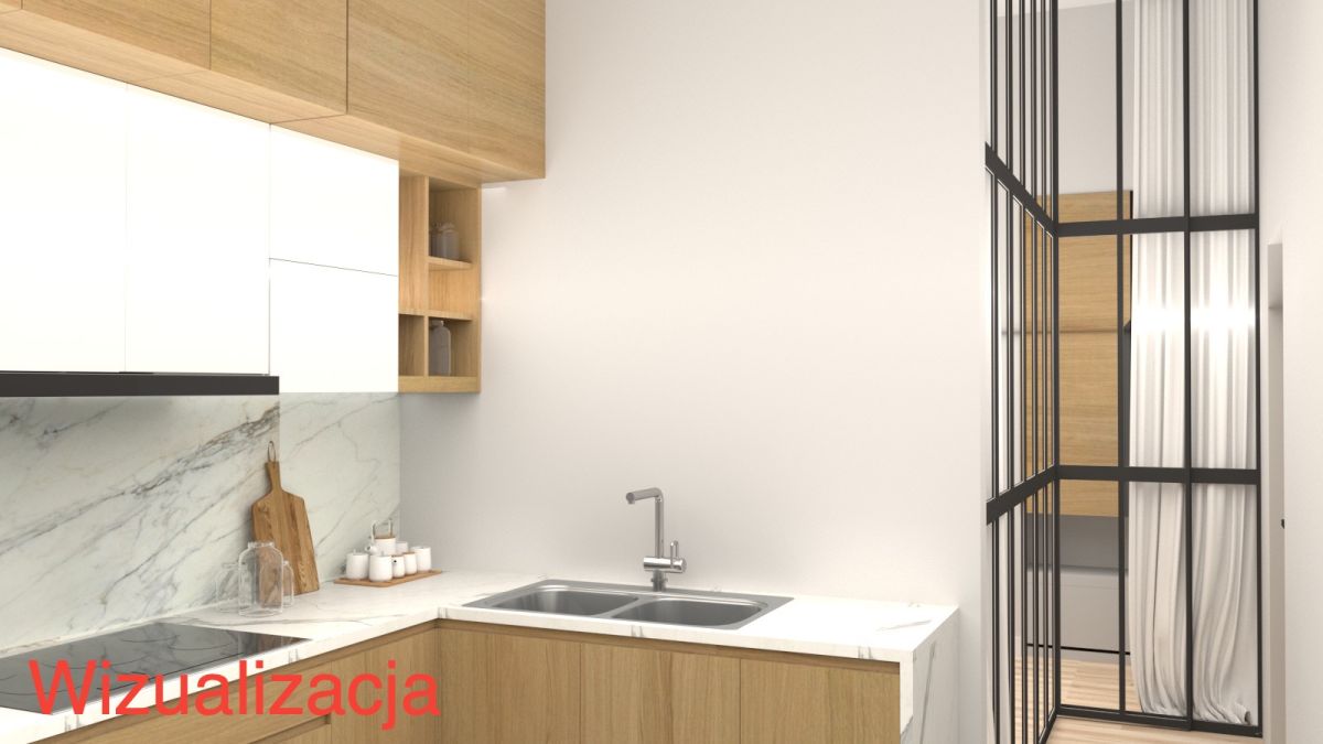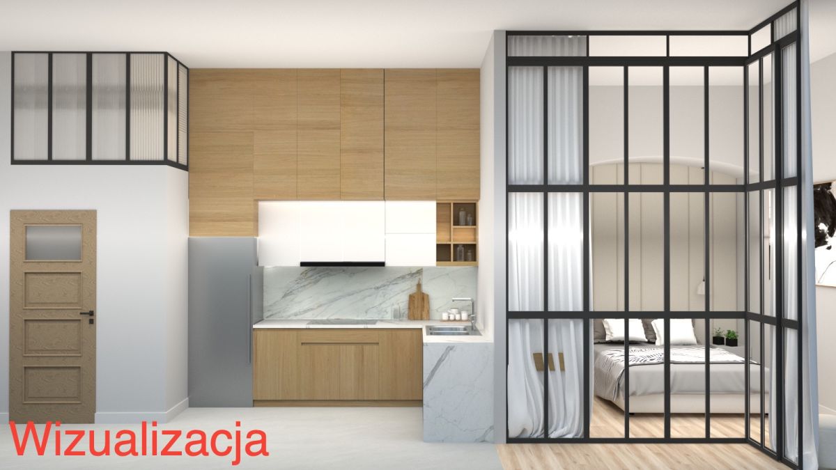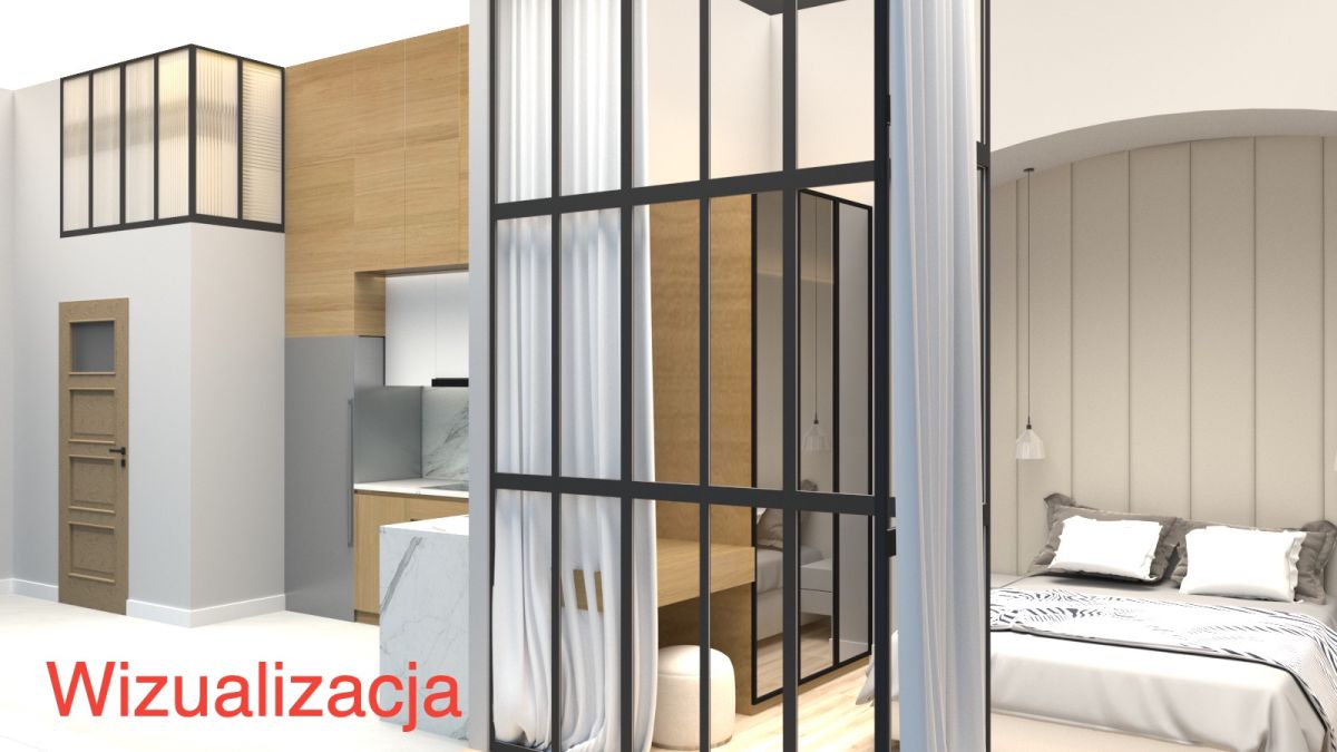 - Funkcjonalny układ - oddzielna kuchnia, przechodni salonik/biuro, łazienka z oknem, przestronny salon z sypialnią na antresoli