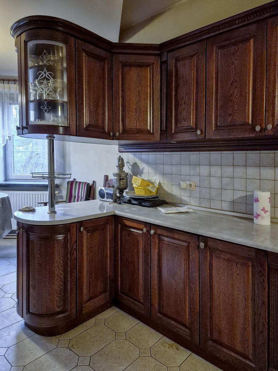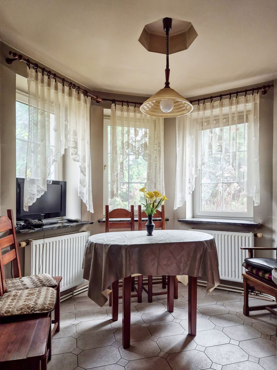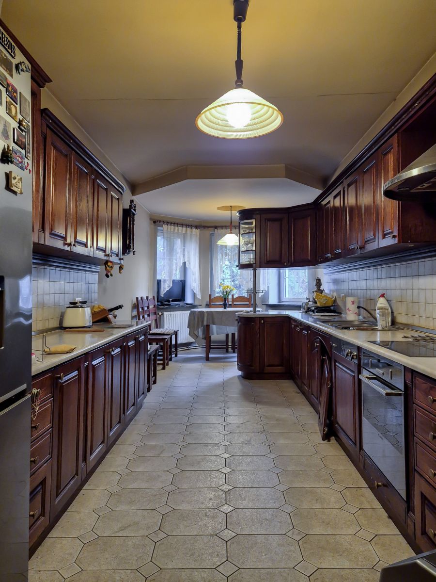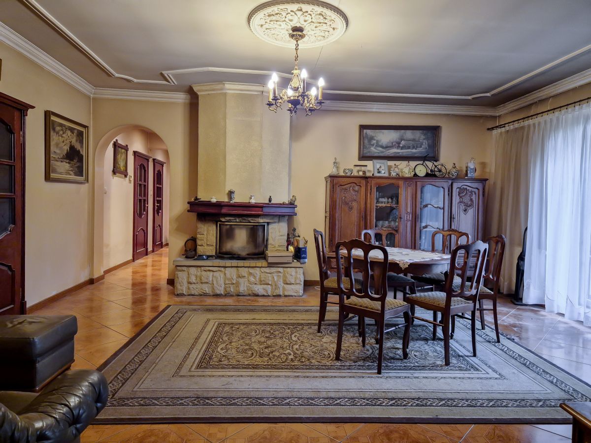Strefa dzienna: Reprezentacyjny salon z kominkiem oraz oddzielna, jasna kuchnia z jadalnią