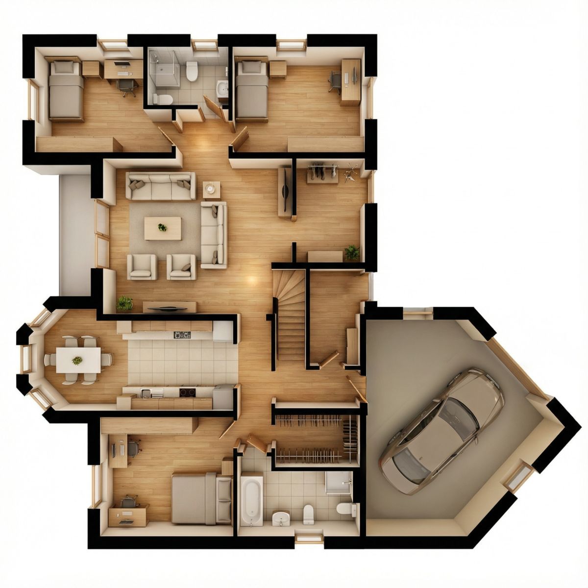 Strefa prywatna: Gabinet oraz dwie ustawne sypialnie.