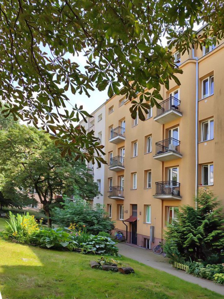 Kamienica 4-kondygnacyjna z 1935 r., 3. piętro, brak windy. Domofon, kamery na każdym piętrze, dwa niezależne wejścia do budynku.
