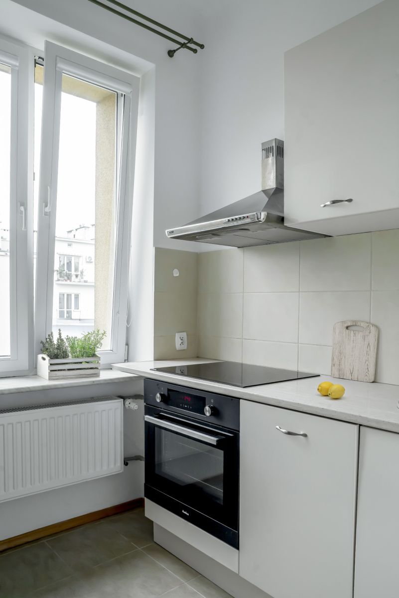 • oddzielna, jasna kuchnia w zabudowie z AGD: lodówka, zmywarka, płyta elektryczna, piekarnik,