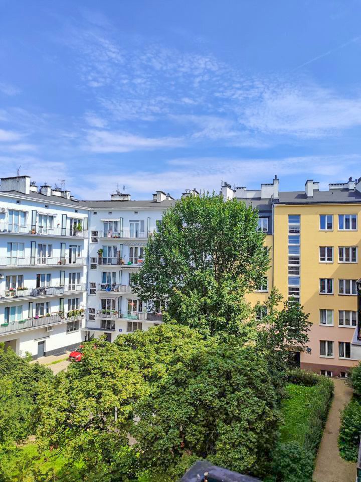 Zielona, prestiżowa okolica: w pobliżu Łazienki Królewskie, Park Promenada i Morskie Oko. Do ścisłego centrum (PKiN) ok. 5 km. Bardzo dobra komunikacja — nowa linia tramwajowa i przystanki autobusowe w zasięgu krótkiego spaceru. W okolicy pełna infrastruktura: sklepy, usługi, kawiarnie i restauracje.