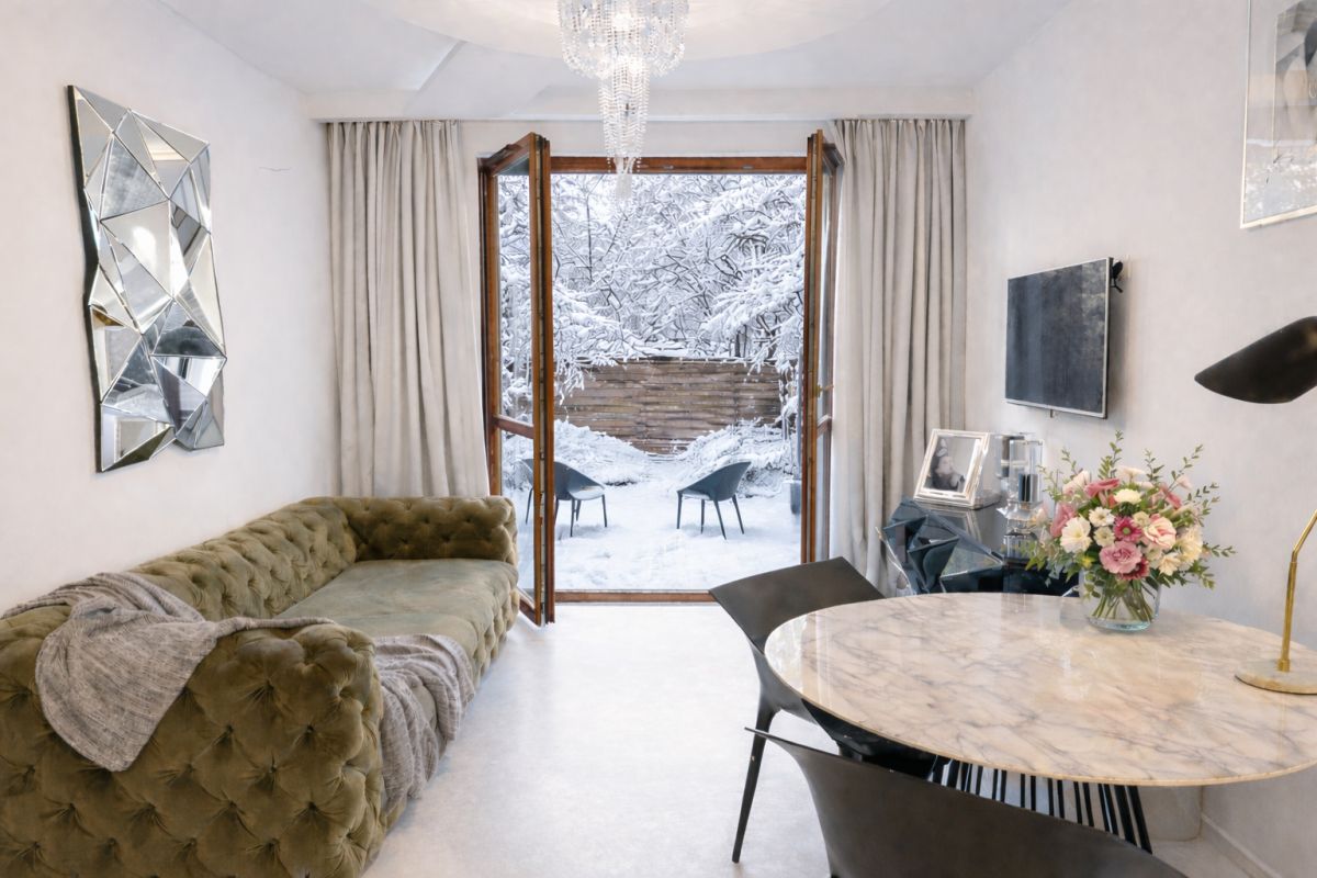 - salon z wyjściem na ogródek,