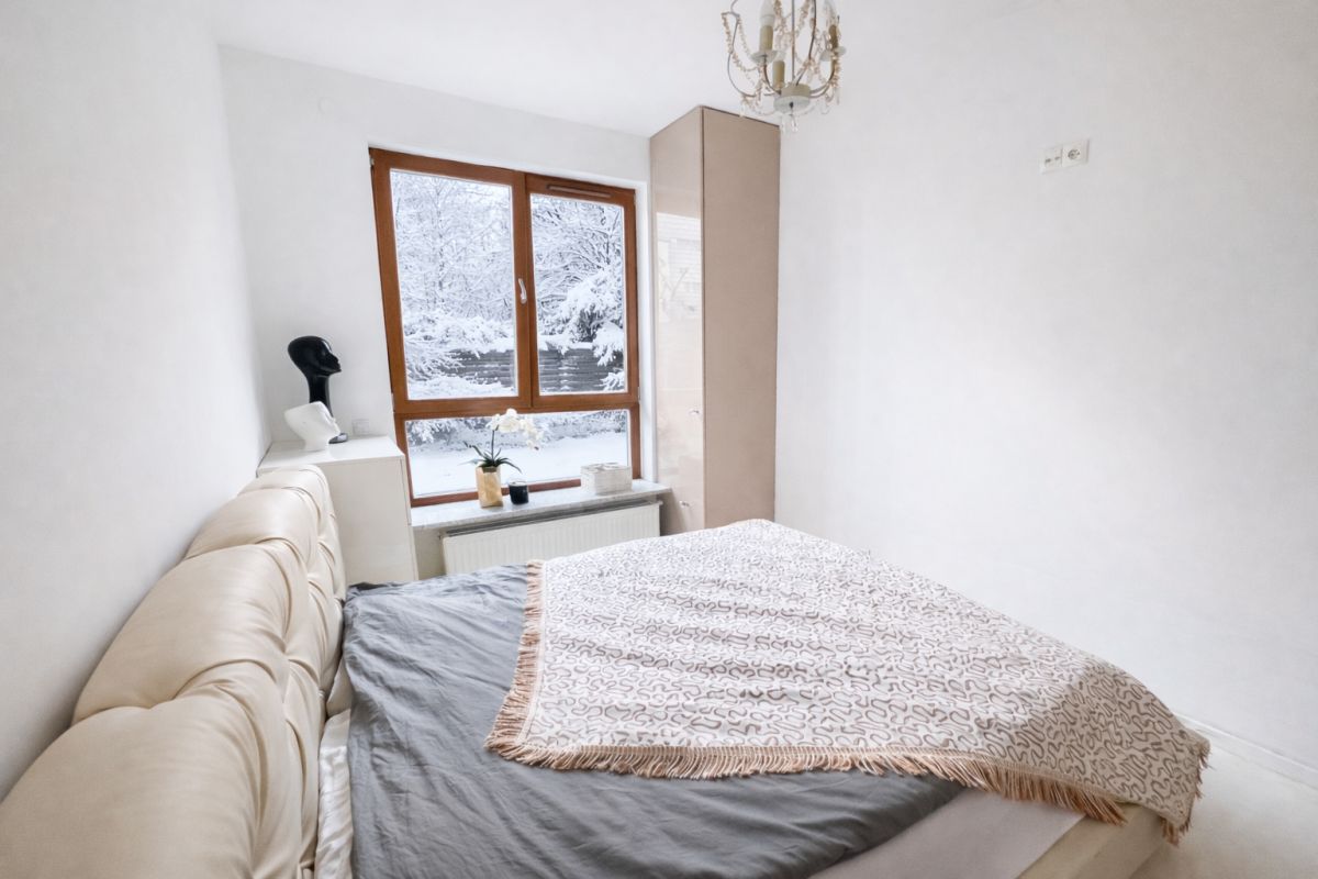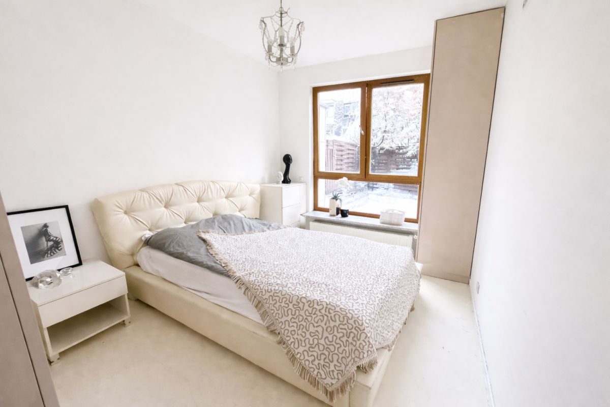 Na sprzedaż przytulne, jasne mieszkanie z własnym ogródkiem na kameralnym i zielonym osiedlu „Zdrowa” przy ul. Sejmu Czteroletniego w Wilanowie.
