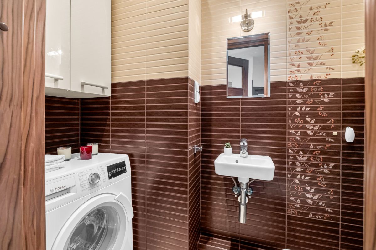 - Dwóch łazienek: gościnnej, wyposażonej w toaletę,