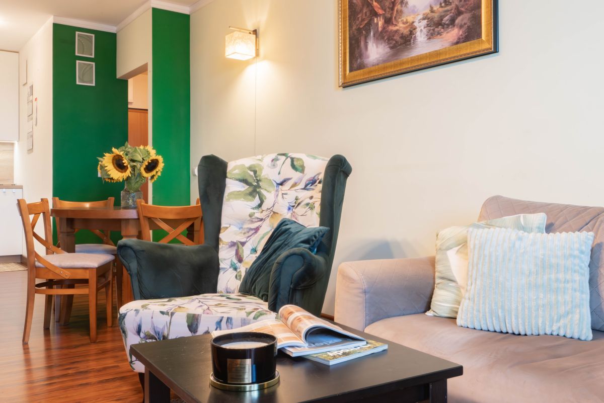 Mieszkanie znajduje się na nowoczesnym, zamkniętym i strzeżonym osiedlu, które łączy komfort życia w centrum miasta z bliskością terenów zielonych. W bezpośrednim sąsiedztwie są aż cztery parki: Moczydło, Szymańskiego, Sowińskiego i Lasek na Kole - idealne do spacerów, rekreacji i aktywnego wypoczynku.