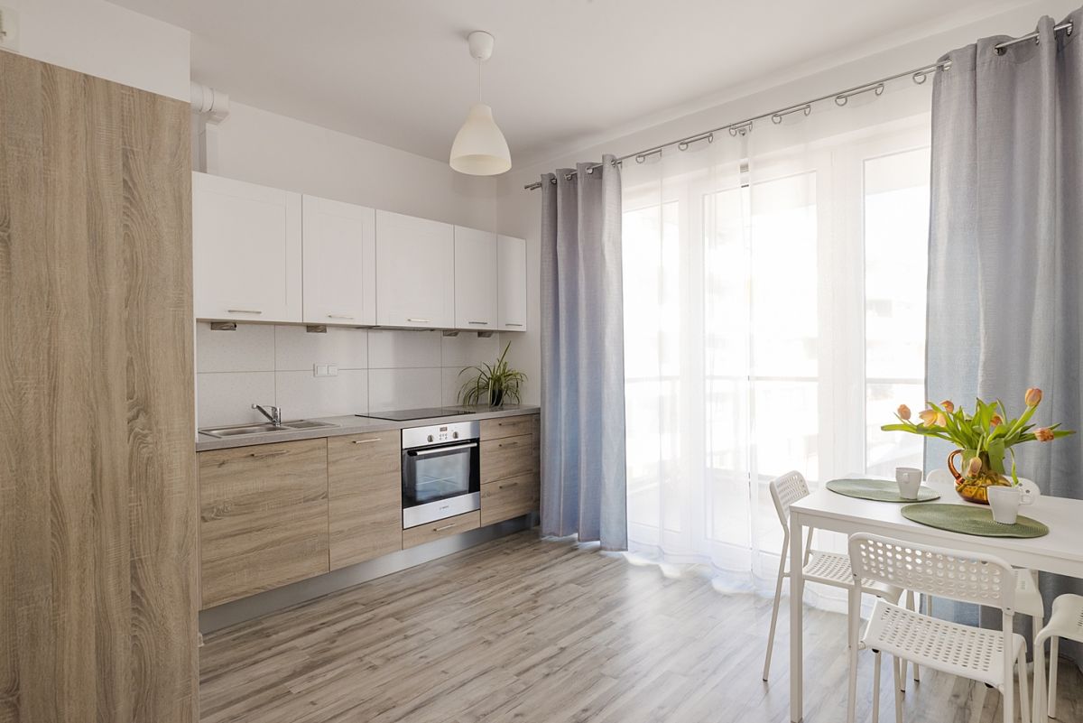 - Umeblowane i w pełni wyposażone w AGD (lodówka, piekarnik, płyta, zmywarka, pralka)